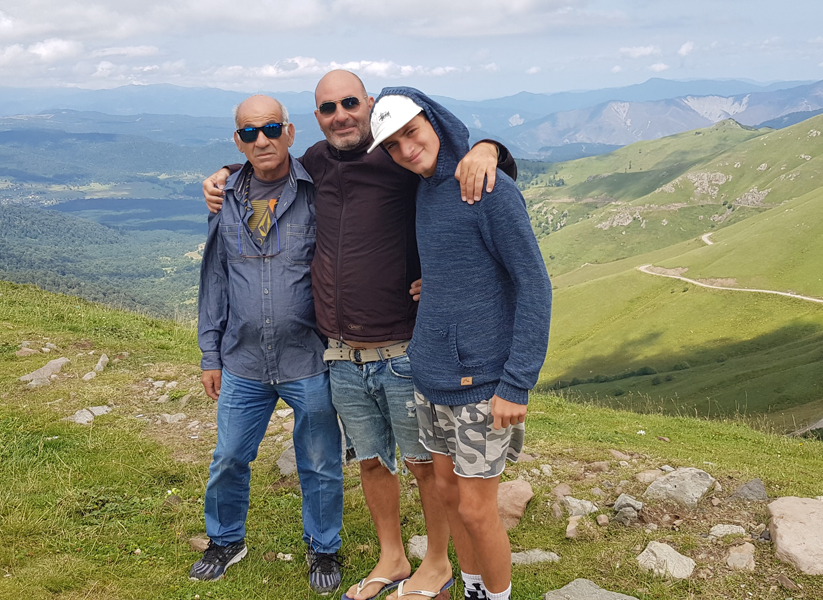 טיול של שלושה דורות: סבא יהושע, אבא דייב, עילי – ועמית.